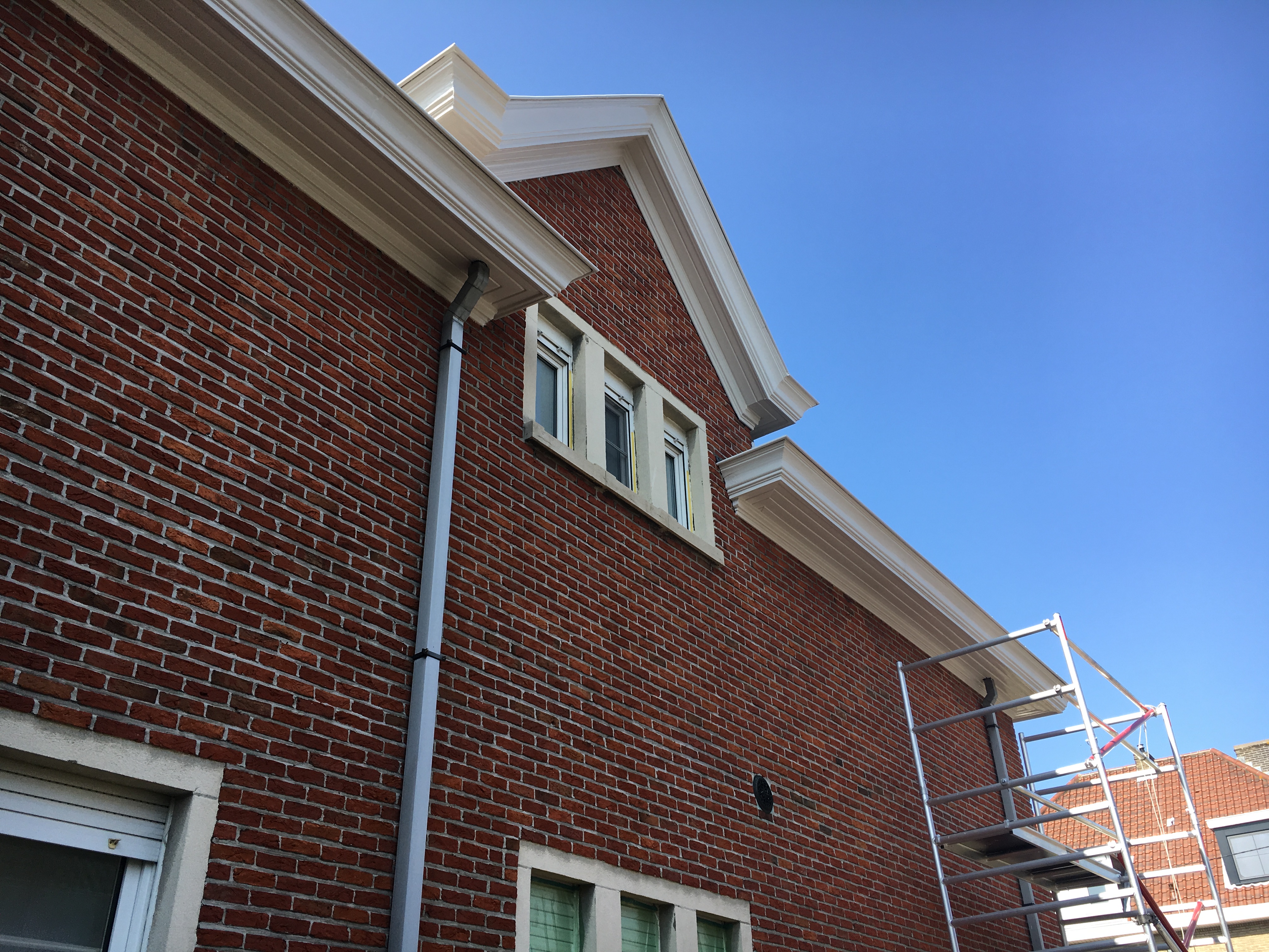 Wanneer de façade stenen hun beste tijd gehad hebben, dan kunnen wij kaleien met renovatiemortel. 1 mm van dit product geeft dezelfde sterkte als 1 cm steendikte. Daarna schilderen we de gevel met het kleur van uw keuze. Zo krijgt een oud gebouw/woning een volledige facelift met een verbluffende vernieuwende look.